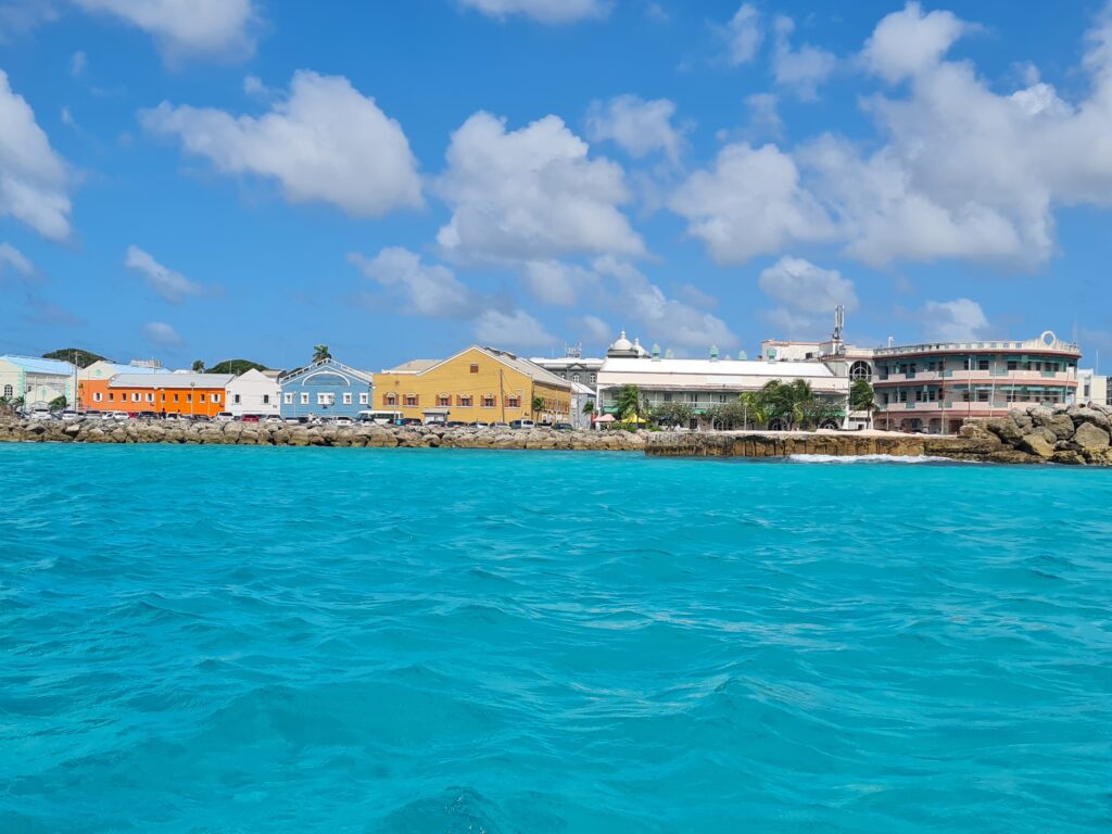 Die Fahrt war ruhig. Immer wieder tauchte eine Schildkröte neben uns auf, als würde sie uns begleiten wollen. Vor Bridgetown lagen bereits viele Boote – und ebenso viele Jetski-Fahrer, die mit erstaunlichem Ehrgeiz versuchten, möglichst nah an uns vorbeizuschießen. Wellen inklusive. Viel Wellen. Viel Geschaukel.