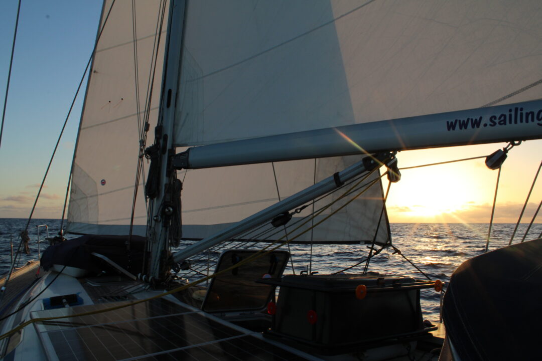 Irgendwo zwischen „läuft doch ganz gut“ und „bitte was passiert hier gerade?“ ist uns das Achterliek unseres Großsegels gerissen. Und als wäre das noch nicht genug, haben wir es noch geschafft, den Baum auf die Solarplatten krachen zu lassen. Die Stimmung an Bord? Nun ja…Nennen wir es… angespannt mit Tendenz zu stillem Augenrollen.