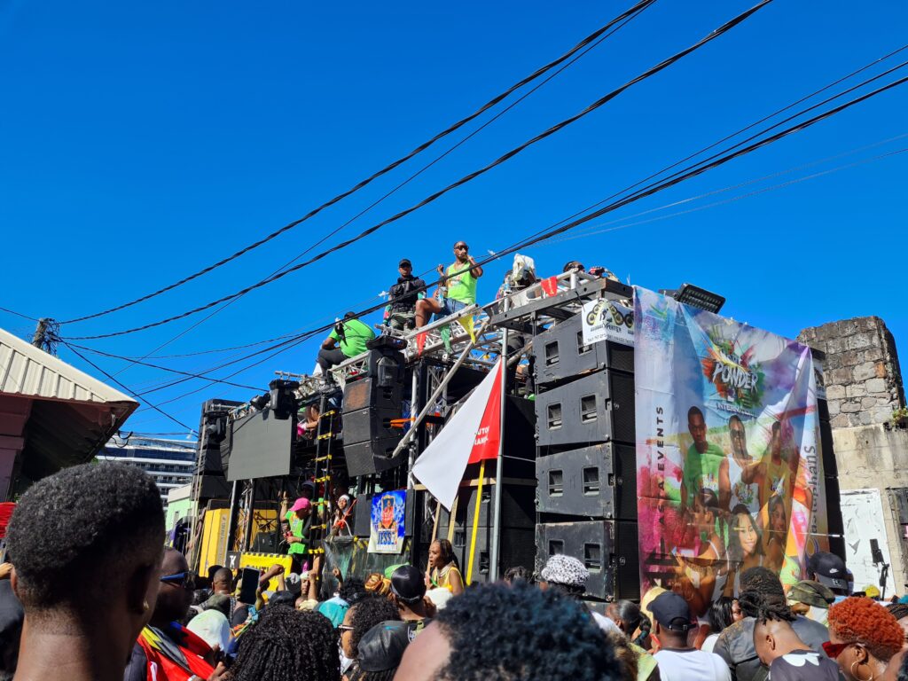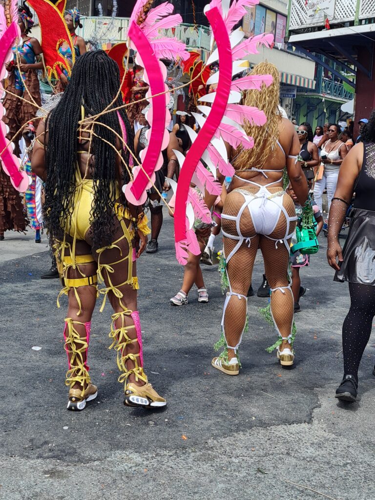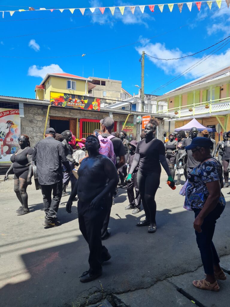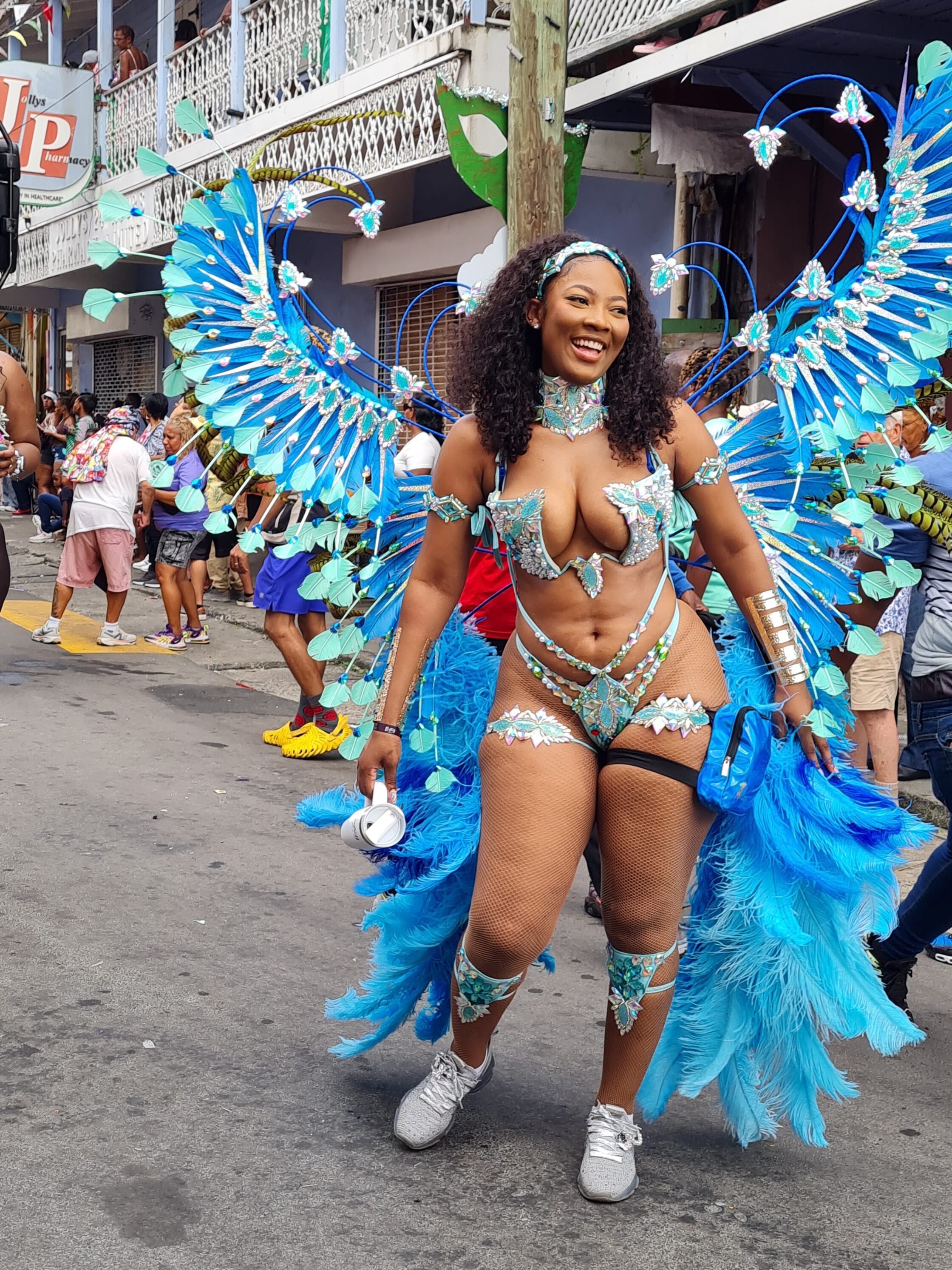 Der „Rosenmontag“ bzw. „J’ouvert“, wie es hier heißt, startet früh morgens in den Straßen Roseaus. Hier wird mit Schlamm, Farbe, Öl usw. um sich geworfen. Das haben wir übersprungen und sind erst später zusammen mit einem amerikanischen Seglerpärchen dazugestoßen, um die Parade anzuschauen. Diese zog den ganzen Tag über durch die Straßen – allerdings nicht so durchgetaktet und am Stück wie man es in Deutschland kennt. Hier kam eine Gruppe, dann… Pause. Warten. Und irgendwann dann die nächste. Ein Rhythmus, der mehr nach Inselzeit als nach Uhr funktionierte. Der Fokus der Parade liegt an diesem Tag eher auf traditionelle Figuren und Kultur. Die Musik, Bouyon, war ohrenbetäubend laut.