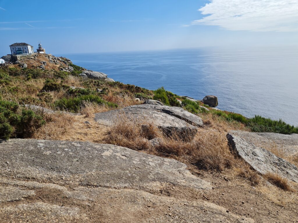 In Fisterra fanden wir einen kleinen Hafen mit kostenlosen Liegeplätzen – seltenes Glück! Der Ort selbst war ok, aber der wahre Schatz lag oben am Cap Finisterre. Ein Fußmarsch von einer Stunde führte uns hinauf. Die Aussicht? Atemberaubend. Auch wenn dort oben schon die halbe Welt stand – dieser Blick ins Unendliche – einfach grandios. Der Name „Cap Finisterre“ kommt vom Lateinischen “Finis Terrae” – das Ende der Welt. Für die Römer war das damals das Ende der bekannten Welt.